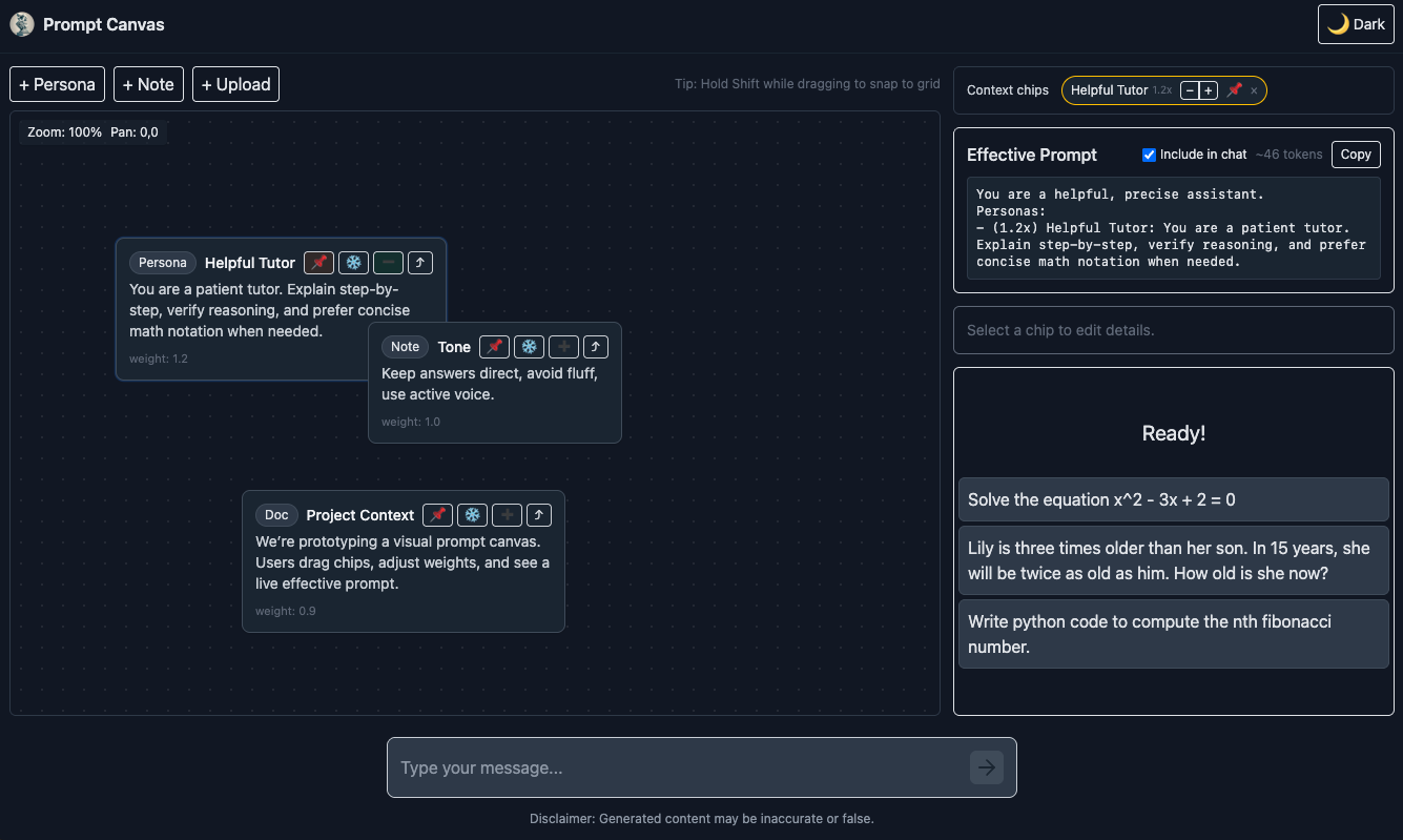 The project is still in development, but the vision is clear: make prompt engineering structured, visual, and reproducible, while showing how lightweight models and modern browser capabilities can empower a new generation of AI-native tools. UI/UX revisions and advanced model usage in R&D currently.